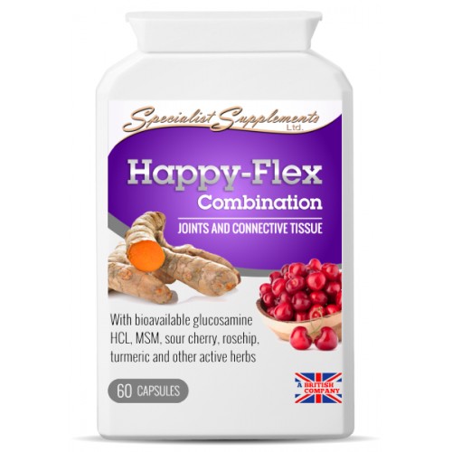 Happy-Flex joint support supplements helps you achieve better joints and connective tissue health. Its unique and comprehensive formulation combines glucosamine, MSM, HCL, rosehip, sour cherry, turmeric and other herbals for a healthy joint support.